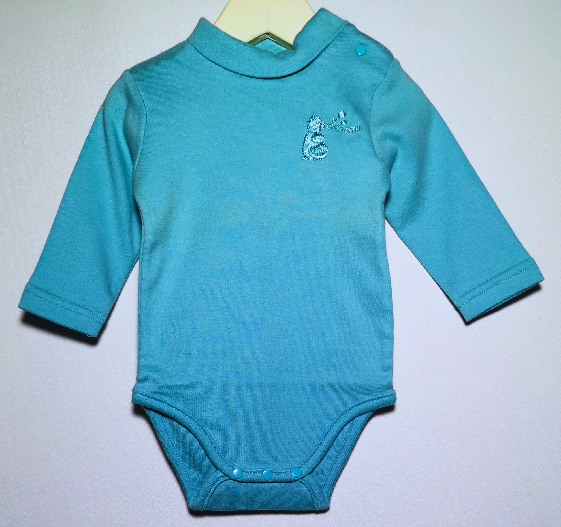 Long-sleeve bodysuit, mock turtleneck, with snap fastenings