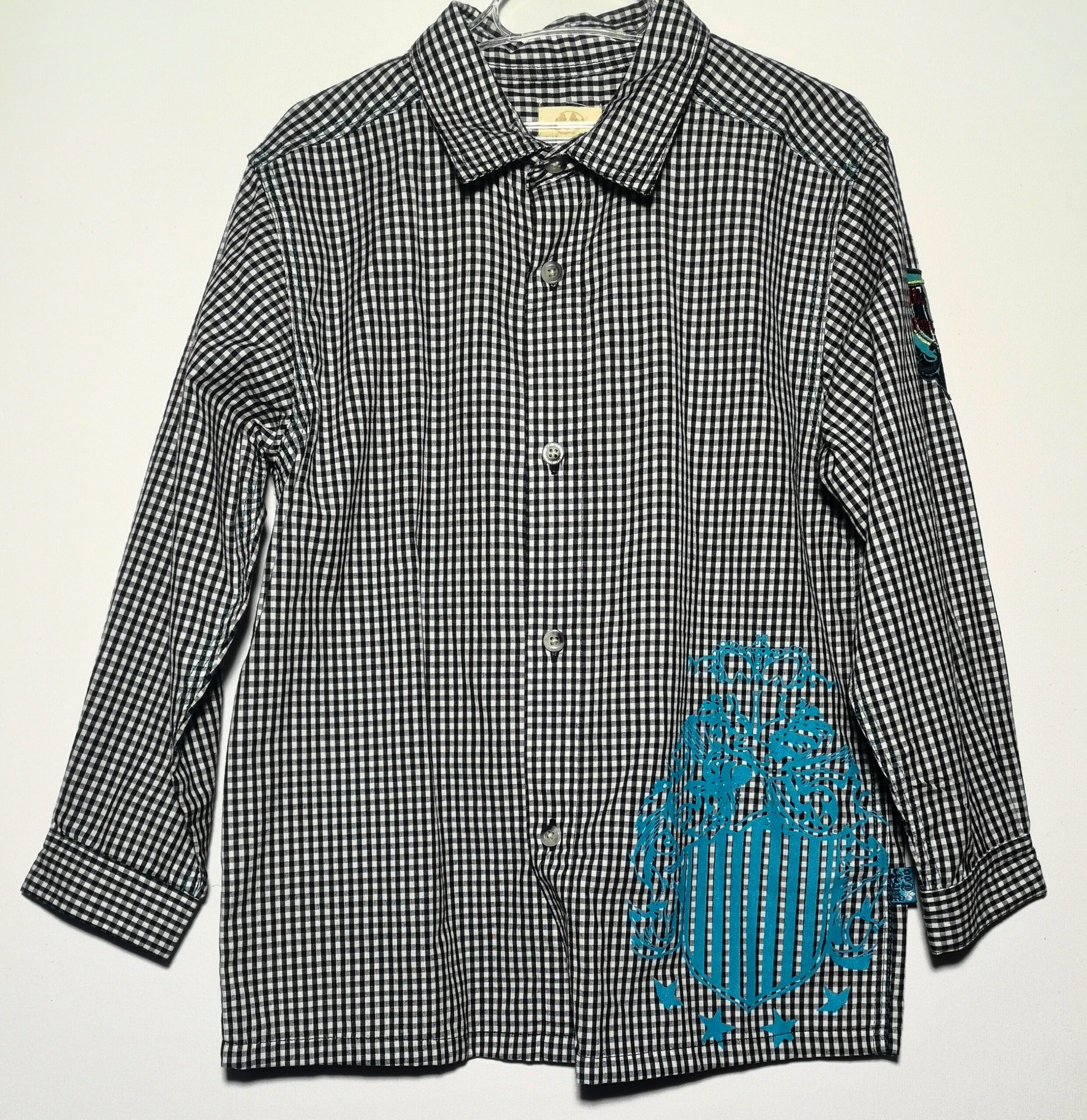 Long-sleeve shirt, white and black checkered